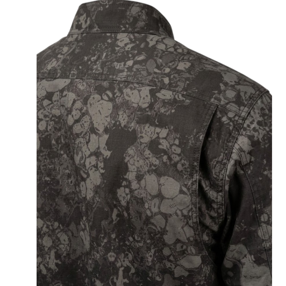 Patrón Geo7™ Night: Estampa exclusiva de 5.11 que utiliza fractales para romper la silueta en entornos urbanos y de baja luminosidad.