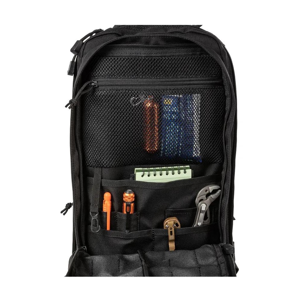 Con una altura de 38.4 cm, ancho de 19.2 cm y profundidad de 16.8 cm, este bolso ofrece espacio suficiente para llevar todo lo que necesitas en tus actividades tácticas. Además, su correa de hombro ajustable ambidiestra te brinda comodidad y versatilidad en su uso. Sistema molle externo frontal y lateral, compatible con toda la linea rush. Su diseño a prueba de agua lo hace perfecto para cualquier situación climática. Incluye un bolsillo para transportar gafas forrado en polar para mayor seguridad y otro trasero para bolsa de hidratacion. Peso 1.1 kg
