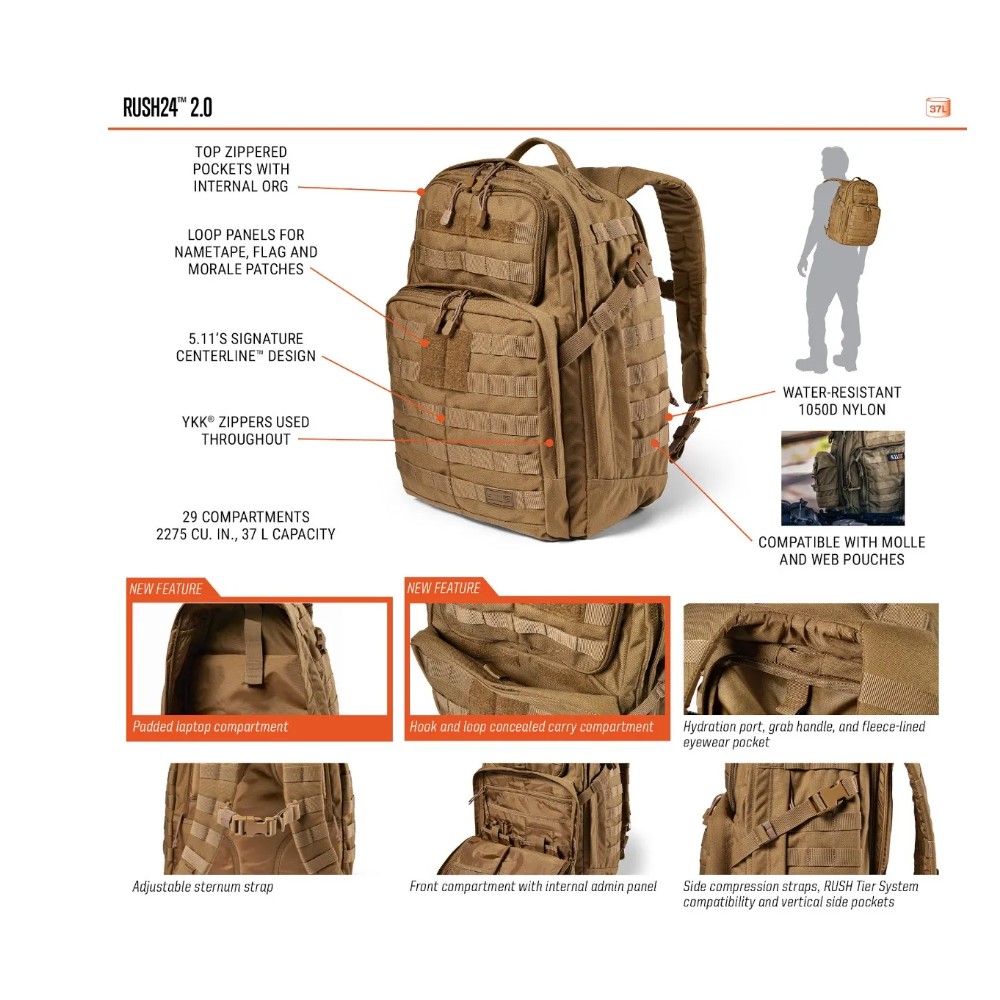 MOCHILA RUSH 24 2.0 5.11 TACTICAL 37 litros COLOR kangaroo